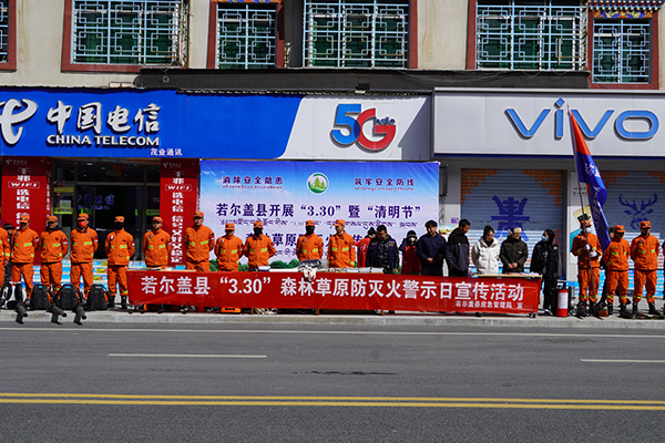 为进一步增强全县广大农牧民群众森林草原防灭火意识,做好森林草原火灾预防工作,3月30日,若尔盖县林草局牵头联合县应急管理局、县电力公司在县城开展“3.30”暨“清明节”森林草原防火警示日宣传活动。